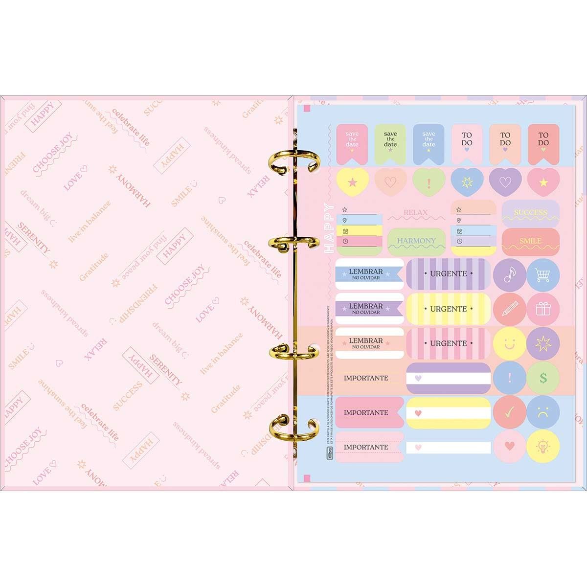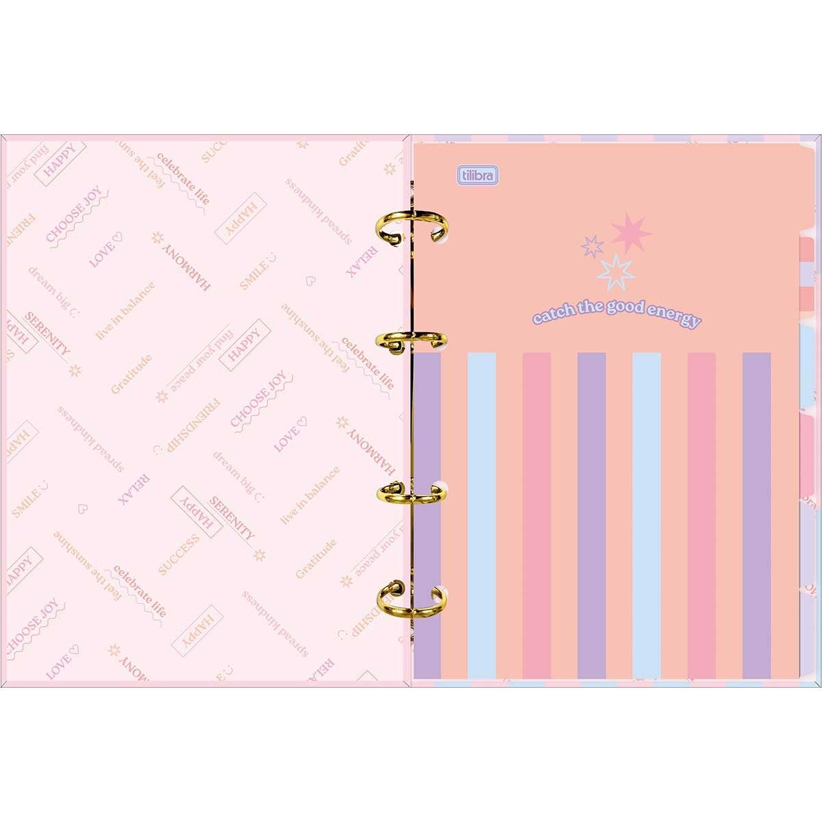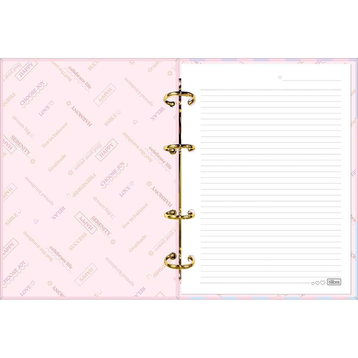 O caderno argolado Tilibra possui capa dura com detalhe metalizado e parte interna decorada, oferecendo um visual inspirado na paleta suave dos tons pastel. O produto também vem com adesivos, bolsa plástica para guardar trabalhos e anotações, jogo com seis divisórias e refil de 80 folhas pautadas e decoradas. Adquira agora o seu!