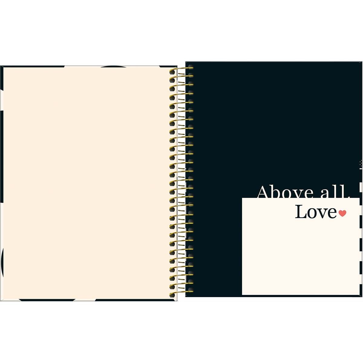 Use este modelo, com capa dura com detalhes metalizados e parte interna decorada, espiral colorido, bolsa de papel decorada para guardar trabalhos, adesivos funcionais, folhas pautadas, decoradas e destacáveis, para anotar as aulas, fazer resumos, listar tarefas e organizar as ideias de forma prática e eficiente.