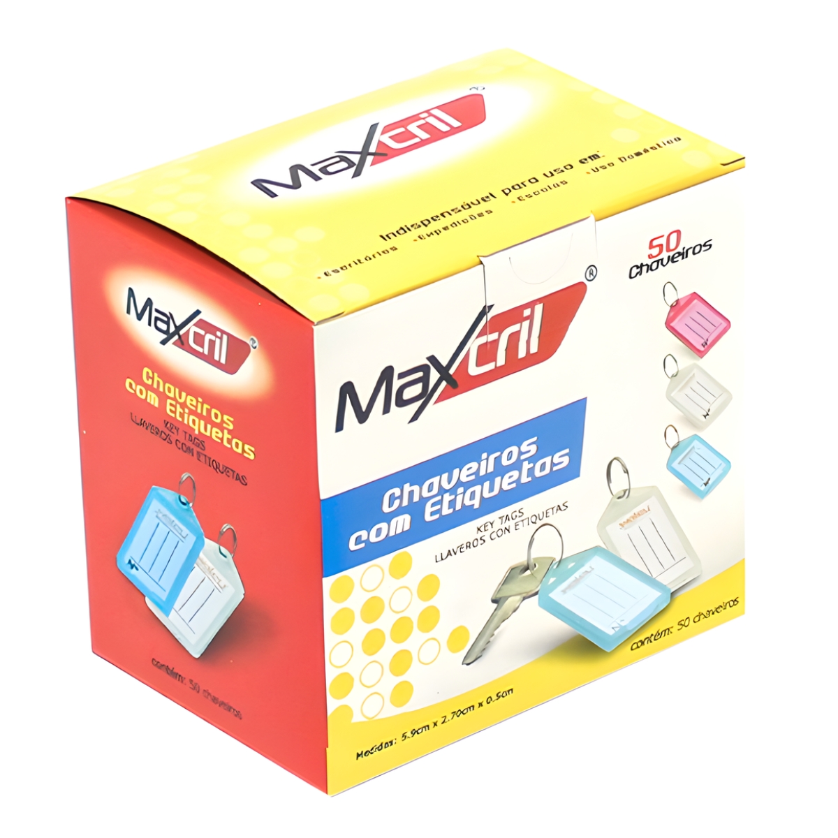 O Chaveiro com Etiquetas Identificadoras com 50 Unidades da Maxcril é ideal para quem precisa organizar e identificar um grande volume de chaves com praticidade e eficiência. Perfeito para hotéis, pousadas, condomínios, imobiliárias e obras, conta com cores vibrantes que facilitam a identificação rápida no dia a dia. Produzidos com material resistente e cantos arredondados, oferecem durabilidade e segurança no manuseio, além de espaço interno para inserção de etiquetas, tornando a organização muito mais simples e funcional.
