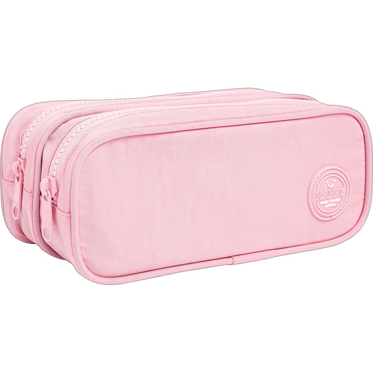 Estojo Duplo Grande Happy Rosa – Organização, charme e praticidade no seu dia a dia!