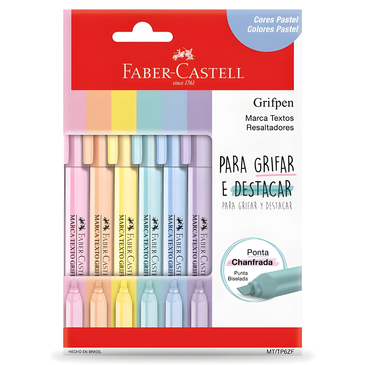 O Marca Texto Grifpen Pastel 6 Cores Faber-Castell é perfeito para quem busca organização com um toque suave e moderno. Com ponta tipo pincel, ele permite variar a espessura do traço entre 0,4 mm e 3,5 mm, oferecendo mais liberdade para grifar, sublinhar, desenhar e fazer lettering com precisão.