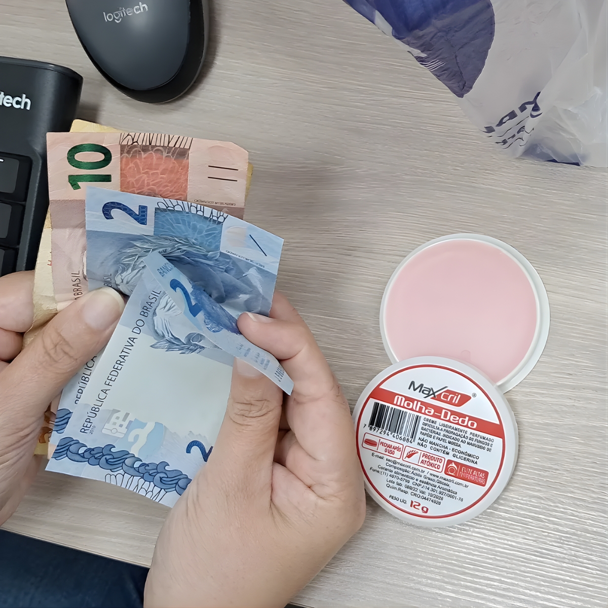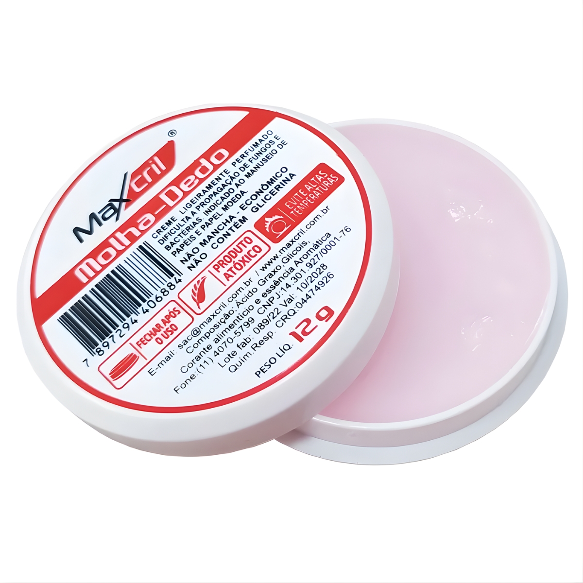 O Molha Dedo 12g Maxcril é a solução prática para facilitar o manuseio de papéis e cédulas no dia a dia, garantindo mais agilidade e precisão em tarefas administrativas, financeiras ou comerciais. Ideal para escritórios, caixas, bancos e uso doméstico, sua fórmula especial não é gordurosa, é levemente perfumada e atóxica, proporcionando conforto durante o uso. Desenvolvido para oferecer melhor aderência ao folhear documentos, é um item indispensável para quem lida com grande volume de papéis.