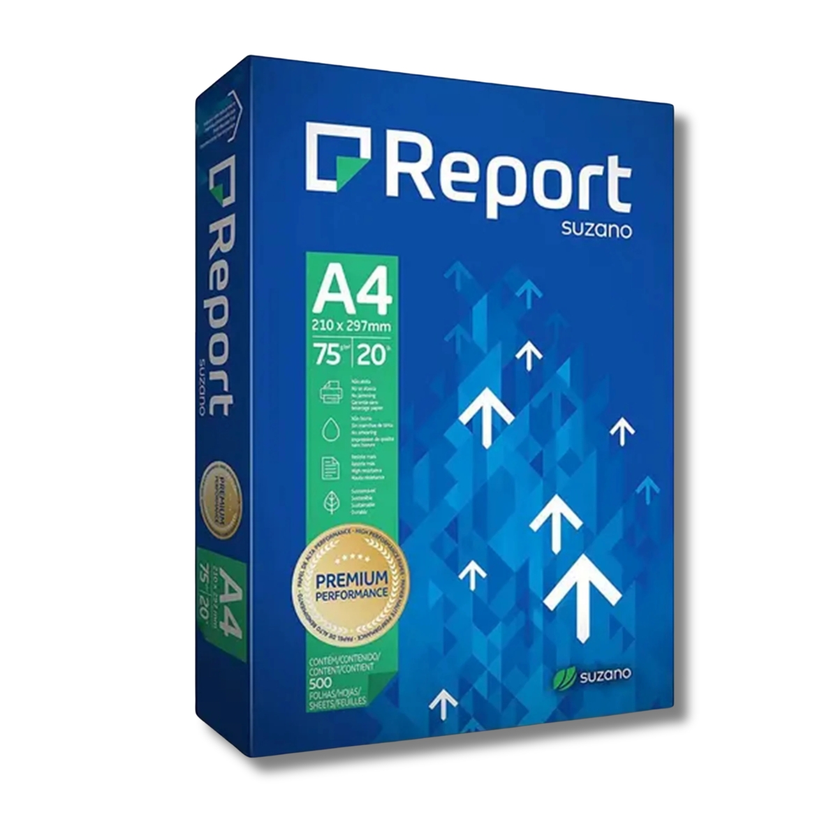 Os papéis Suzano Report se destacam por suas embalagens de padrão internacional, mantendo a qualidade premium com a produção 100% brasileira. Um produto que carrega a essência local, mas com padrão global.