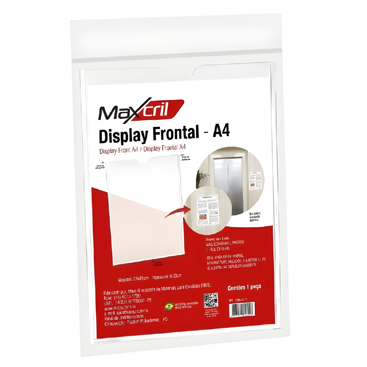O Display Frontal A4 Cristal Maxcril é a opção prática e econômica para expor avisos, comunicados, informativos e materiais visuais com organização e excelente visibilidade. Ideal para escritórios, comércios, escolas e recepções, pode ser fixado facilmente em paredes, portas ou superfícies lisas através da fita dupla face, adaptando-se a diferentes ambientes. Seu design sem fundo proporciona leitura limpa e direta, enquanto a abertura superior tipo meia lua facilita a troca rápida dos papéis. Com material resistente e transparente, garante durabilidade e um visual profissional para suas comunicações.